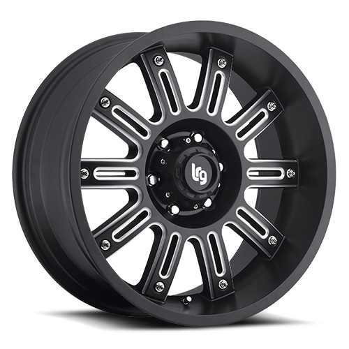 LRG Rims Apache 102, a fresh, modern 10-spoke to add flavor to an otherwise staid truck, Jeep or SUV. In its satin black/milled finish, the thin spokes with highlighted ribs and simulated rivet heads make the Apache 102 rim outstanding.