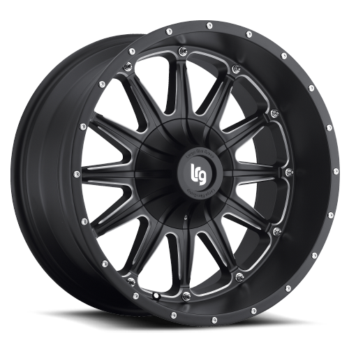 LRG Rims Sandman 103, a 12-spoke with updated styling that separates it from other offerings. In its black/milled finish, the Sandman 103 rim with highlighted ribs and simulated rivet heads along the rim stands alone. In chrome, the Sandman 103 rim is exquisite with its shining reliefs and details. Both versions feature covered lug nuts for a smooth, integrated appearance.