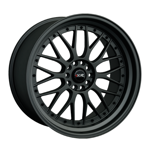 Step Lip Design with clean cut mesh spoke. Hardcore matte Black and matte Gun metal. Removable metal rivets available in Chrome, Red, Blue, Gold and Gloss Black. LOWER offset and more WIDTH for XXTREME Staggered fitment. Standard offsets also available for non-staggered cars. Exclusive colors and unique bolt patterns available through select XXR dealers.